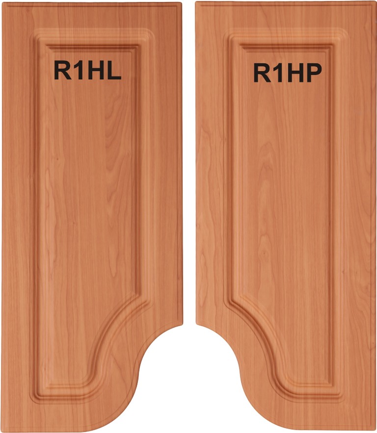 Dvířka této sestavy jsou vhodná pro kombinaci s tvary R1, R2, R3, R4 a R5. Svým obvodovým profilem odpovídají tvaru R0. Vnitřní frézování pro dvířka R1HL (R1HP) odpovídá tvaru R1, pro dvířka R2HL (R2HP) odpovídá tvaru R2, takto analogicky až pro dvířka R5HL (R5HP) .